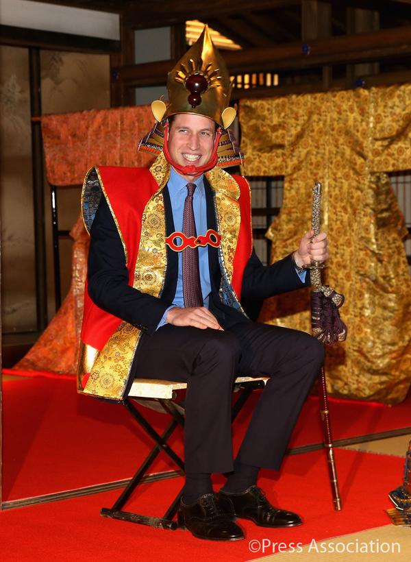 The Duke of Cambridge was transformed into a samurai warlord when he visited the set of a long-running Japanese drama on his third day in Japan.