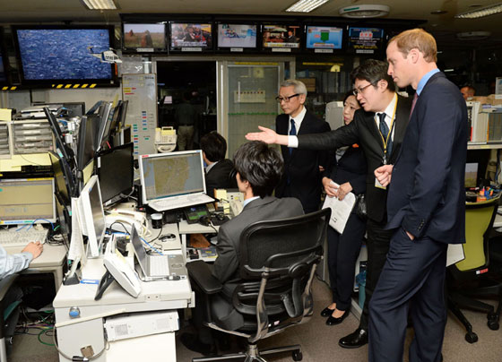 Later the mood was more serious in NHK’s newsroom, where The Duke watched a three-minute film showing how the station covered the devastating 2011 earthquake and tsunami which triggered the meltdown at the Fukushima Daiichi nuclear plant.