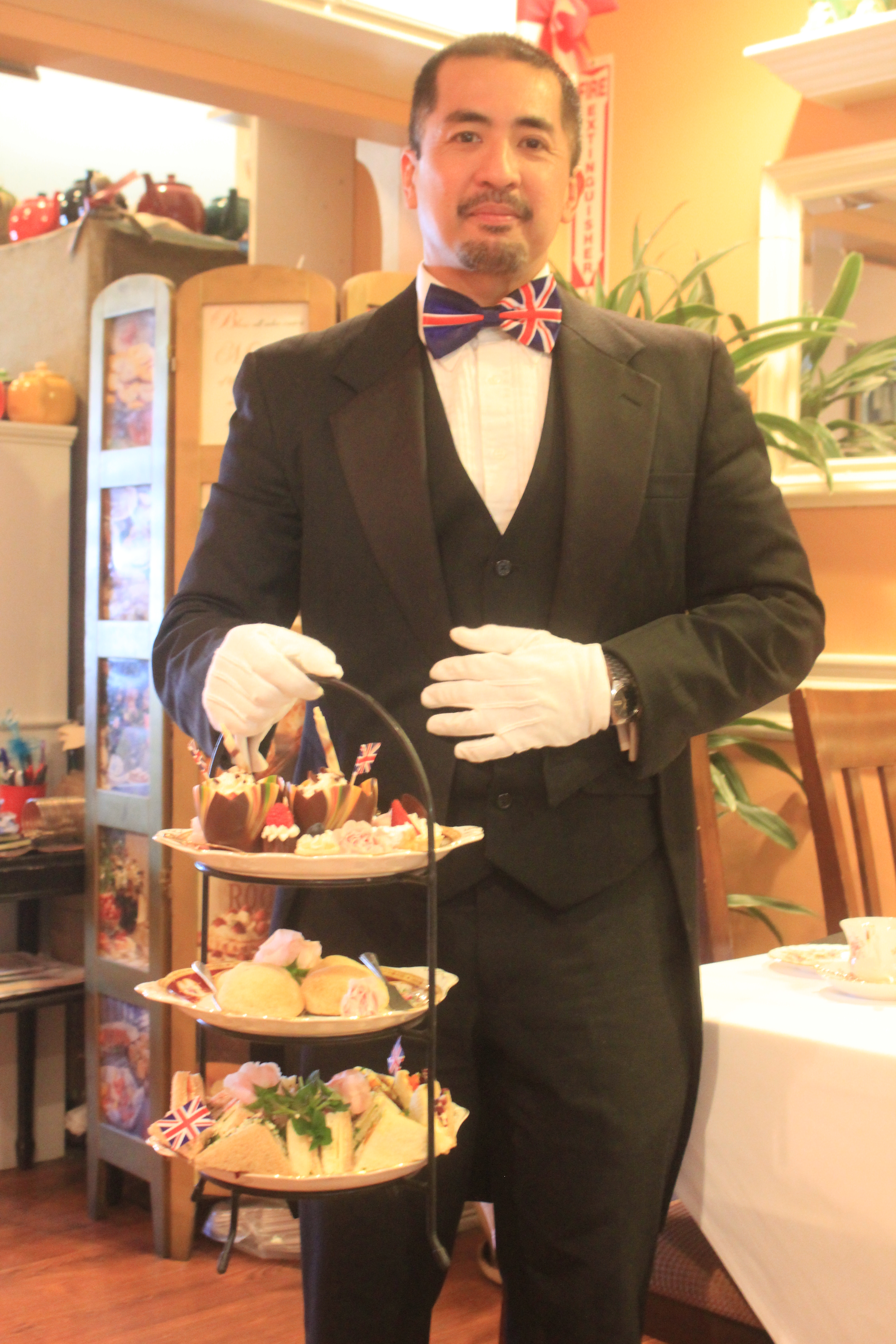 High Tea Cottage owners Jenn and Dr. Ken Dodsworth have enjoyed afternoon tea in the most exotic and glamorous locations around the world including Egypt, South Africa, France, and the Grand Canals of Venice…but nothing compared to being invited to Buckingham Palace for The Queen’s Coronation celebration and enjoying tea with Her Majesty Queen Elizabeth II. Having catered afternoon tea for everyone from royalty to a former President of the United States…Jenn Dodgsworth now shares her special talents with all of us. High Tea Cottage is located in Woodland Hills in an old historic home that used to belong to the Warner Brothers Studio. Enjoying a leisurely Afternoon Tea is top priority to Jenn who makes the time-honored English tradition a true experience to remember. From the classy greeting from Butler Peter, to the impressive presentation of teas, sandwiches and pastries, the environment that Jenn has created allows you to leave your cares and worries at the door and invites you to truly luxuriate over a lovely Afternoon Tea, which at High Tea Cottage is not just a meal….but an experience.